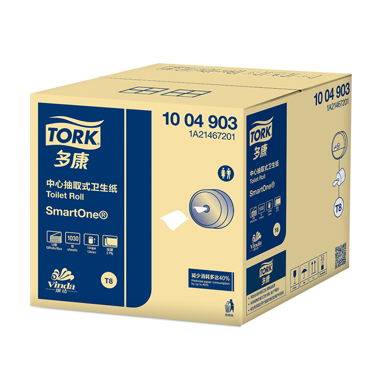 多康中心抽卫生纸自上市以来得到客户的一致好品,现如今著名餐饮北京全聚德,海底捞等高档餐饮均选择多康Smartone中心抽卫生纸。主要是这款中心抽除了能为您减少消耗高达40%,维达多康TorkSmartOne®系统产品采用创新型设计,为您减少补充装更换次数、降低维护频率,有效为您提高效率,节省时间成本。 对于顾客的洗手间体验而言很重要。维达多康SmartOne®系统产品的分配器的独特设计,使得纸卷能够被全方位保护,避免受到污物的污染。一次抽取一张,顾客只接触到自己使用的卫生纸,有效避免交叉污染。确保卫生、安全。能为顾客提供更卫生的体验,有效减少纸卷的污染和交叉污染风险。